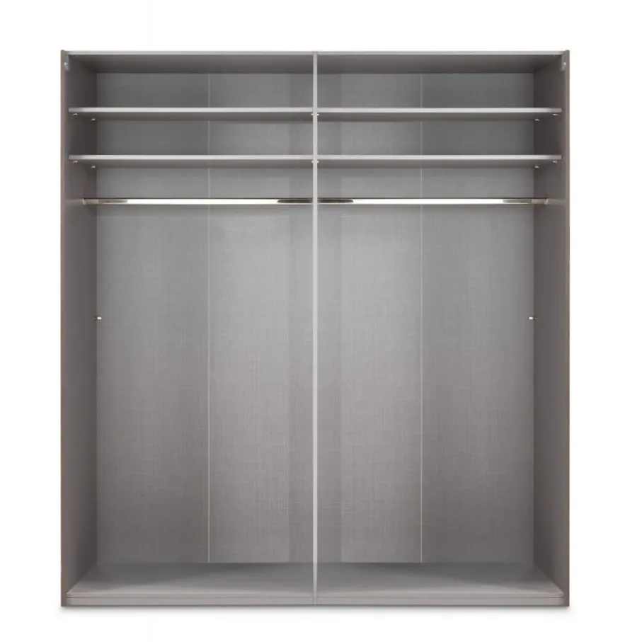 Kledingkast Mierlo bestaat uit 2 kastelementen van gelijke breedte. Beide elementen zijn voorzien van 2 planken en een roede. Het interieur van de schuifdeurkast heeft een neutrale grijze kleur. Er zijn extra leverbaar voor de Mierlo schuifdeurkast. Er zijn ook deurdempers leverbaar, die zorgen voor luxe softclose.