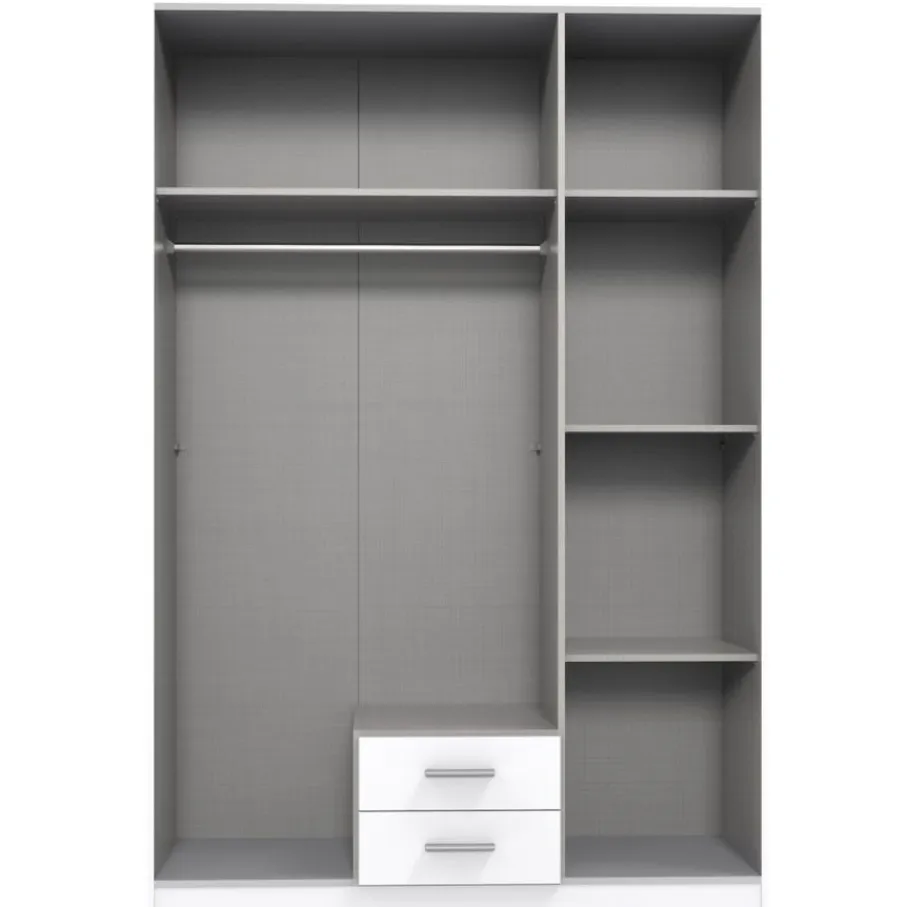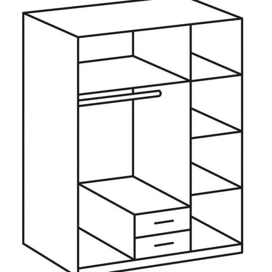 De kast heeft links één ruim vak met een legplank en een roede. Onderin zitten 2 handige lades voor bijvoorbeeld sokken en ondergoed. Rechts heeft kledingkast Stratum een smal vak met 3 legplanken met lekker veel legruimte. Stratum wordt geleverd inclusief 4 planken en 2 roedes. Er zijn extra legplanken leverbaar om je Stratum kledingkast mee uit te breiden.