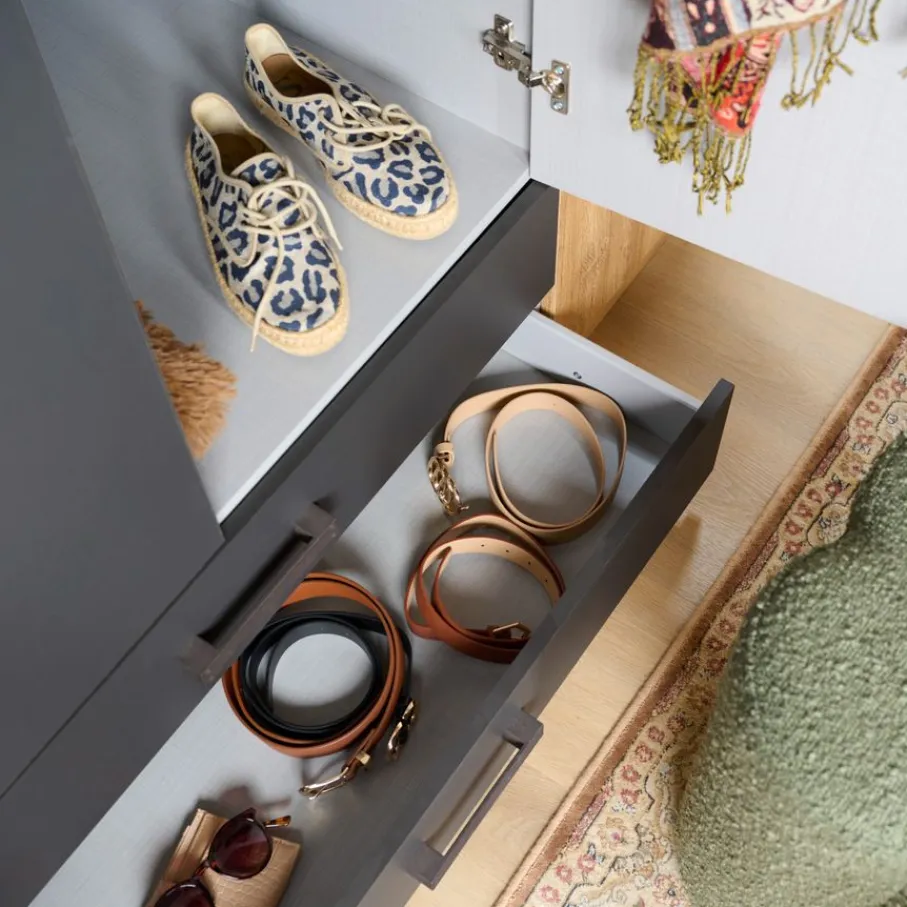 - Super handig ingedeeld met zowel roedes om je kleding netjes op te hangen als planken voor al je opgevouwen items.