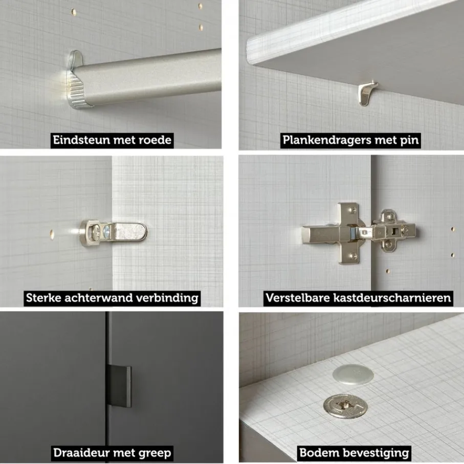 - Ideaal voor kamers met beperkte ruimte, want deze kast bouw je gemakkelijk staand op.