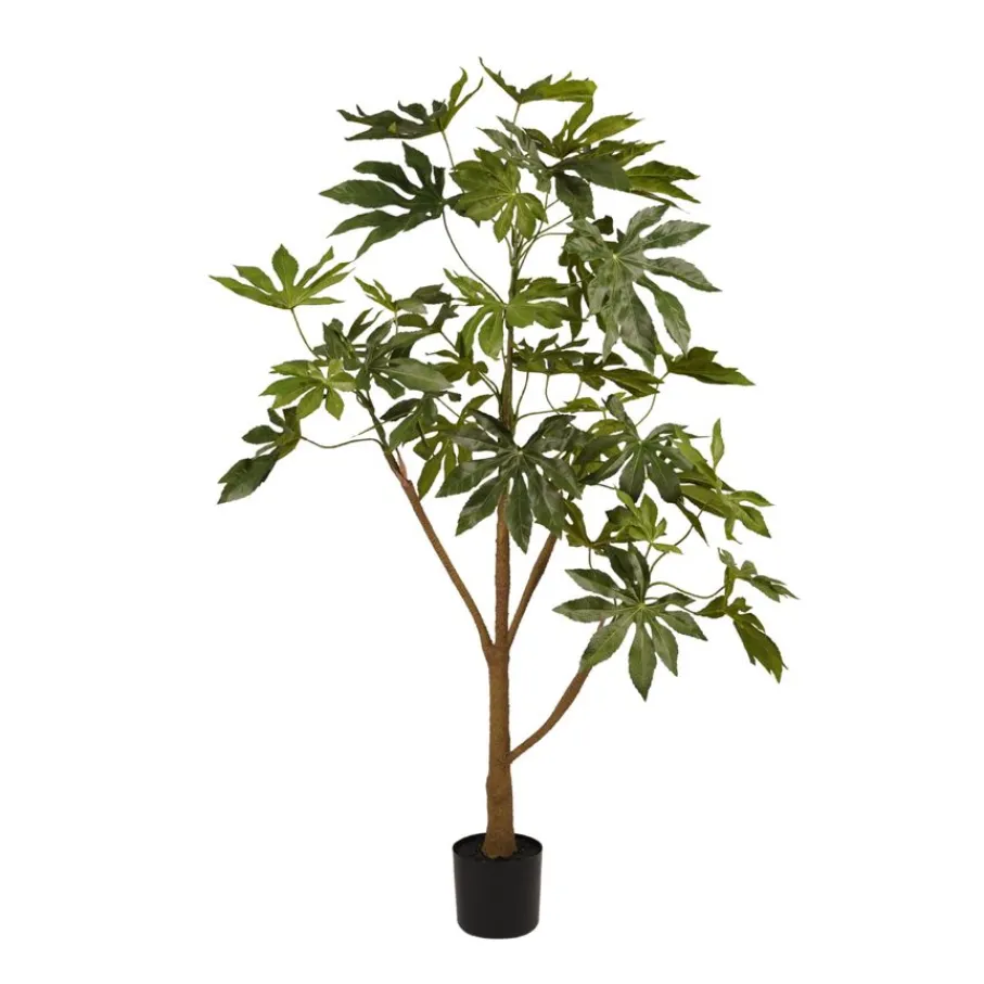 Met kunstplant Fatsia haal je direct een stukje natuur en frisheid in huis, zonder gedoe! Deze prachtige kunstplant, gemaakt van duurzaam kunststof, metaal en stof, brengt in een handomdraai een groene sfeer in elke ruimte. Geen groene vingers nodig, wel de gezelligheid van planten om je heen. Perfect voor die lege hoek of als sfeermaker op je dressoir, want zo creëer je in een handomdraai een levendige en uitnodigende plek. Kunstplant Fatsia staat garant voor een altijd frisse look! TIP: Modelleer de kunstplant in de juiste vorm na het uitpakken.