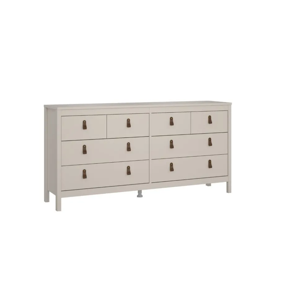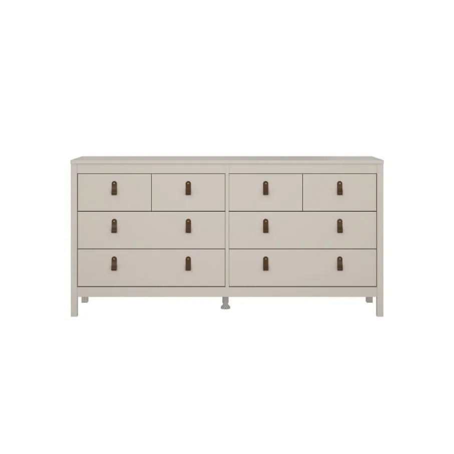 Ladekast Dallas beschikt over 8 lades en biedt daarmee veel opbergruimte. Bovenin zitten 4 smalle lades naast elkaar van 33×33 cm. Daaronder zitten 6 brede lades, in twee rijen van drie. Deze hebben elk een afmeting van 72×33 cm. Alle lades zijn ruim 12 cm diep en zo kun je lekker veel opruimen in ladekast Dallas.