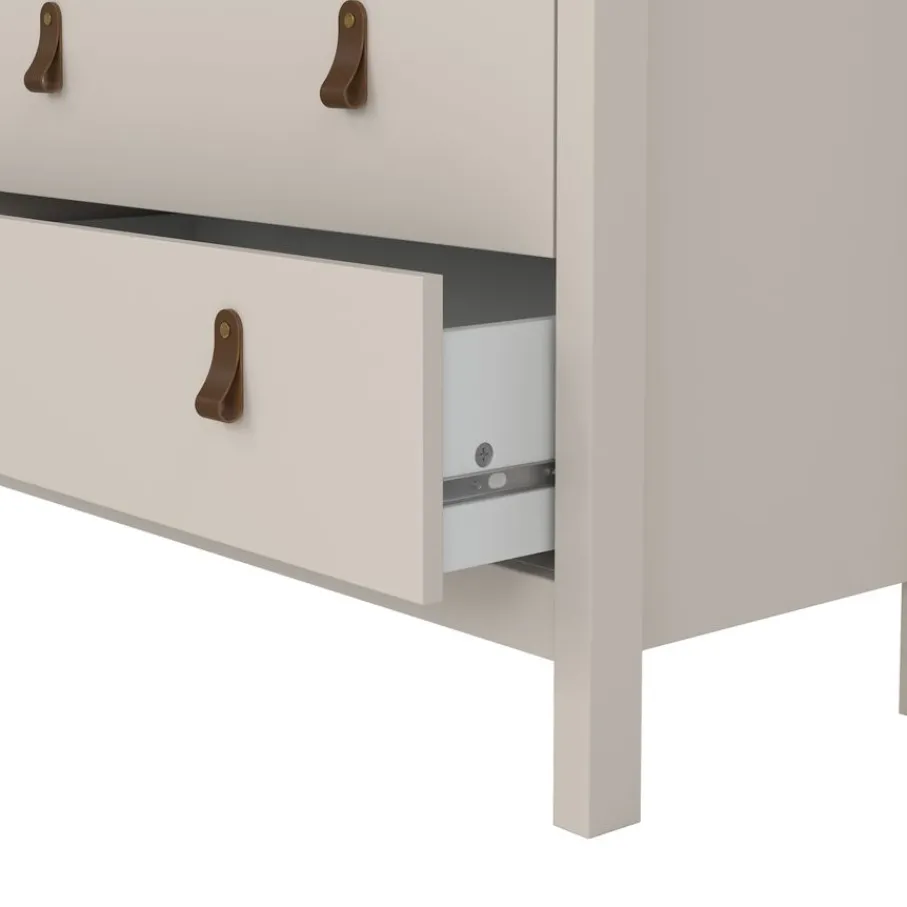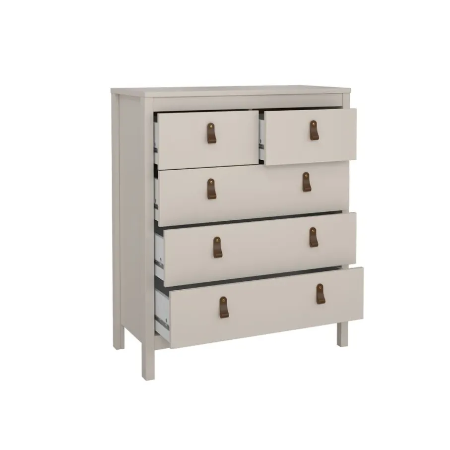 Ladekast Dallas beschikt over 5 lades en biedt daarmee lekker veel opbergruimte. Bovenin zitten 2 smalle lades en daaronder zijn 3 lades over de hele breedte van de kast.