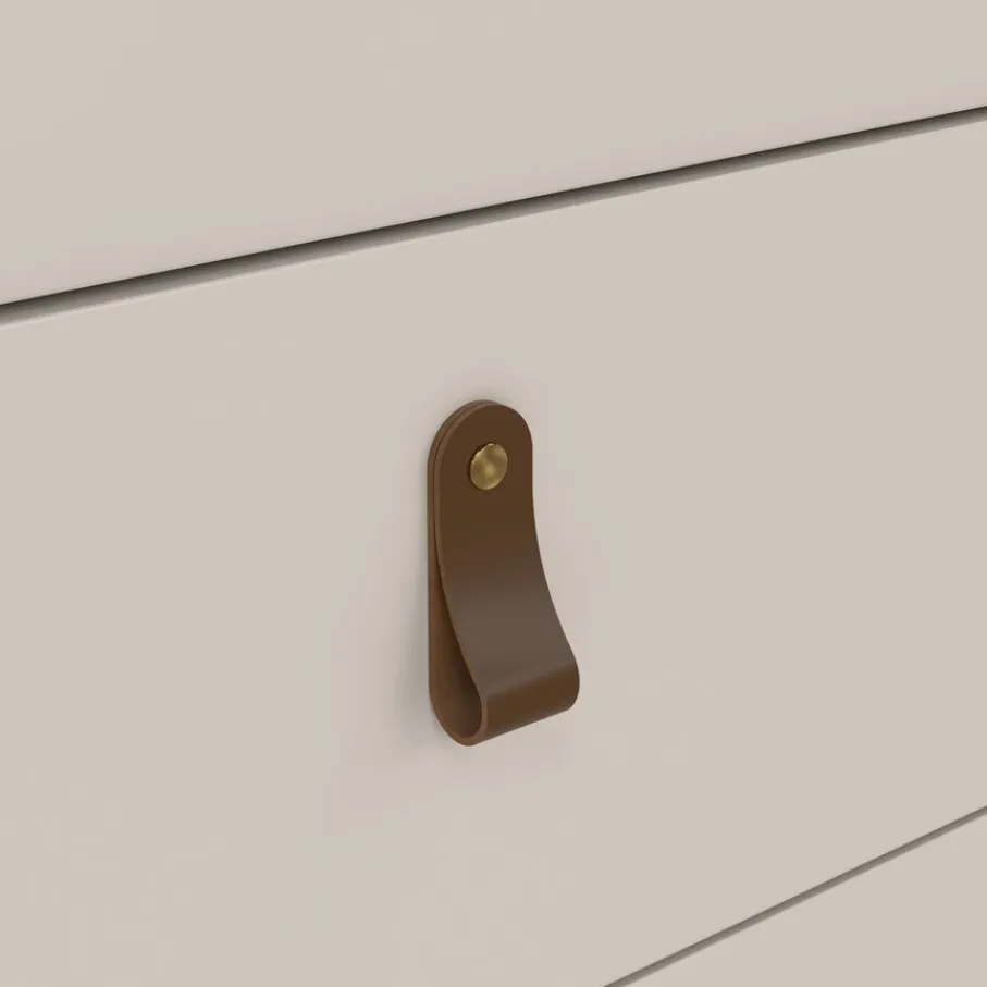 - Kies zelf de look die bij jou past: met twee sets handgrepen – stijlvolle leren lussen én strakke metalen knoppen – geef je deze kast je eigen unieke twist.