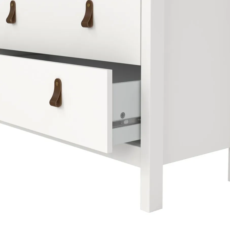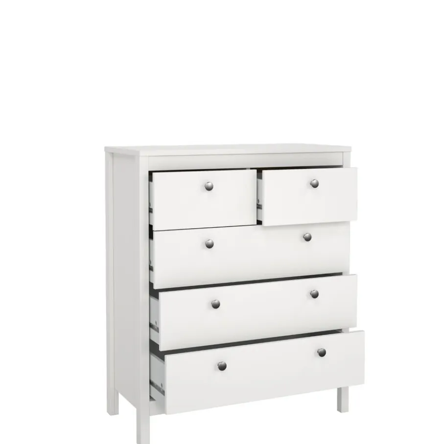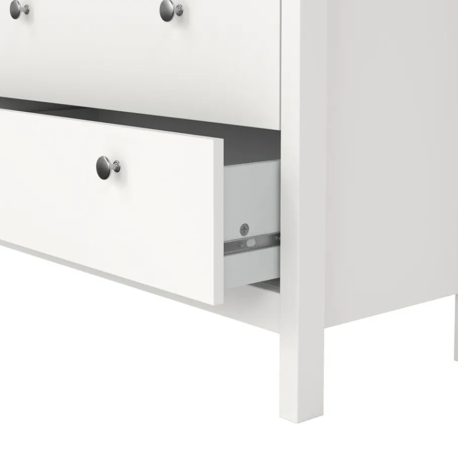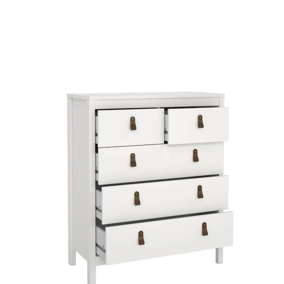 Ladekast Dallas beschikt over 5 lades en biedt daarmee lekker veel opbergruimte. Bovenin zitten 2 smalle lades en daaronder zijn 3 lades over de hele breedte van de kast.