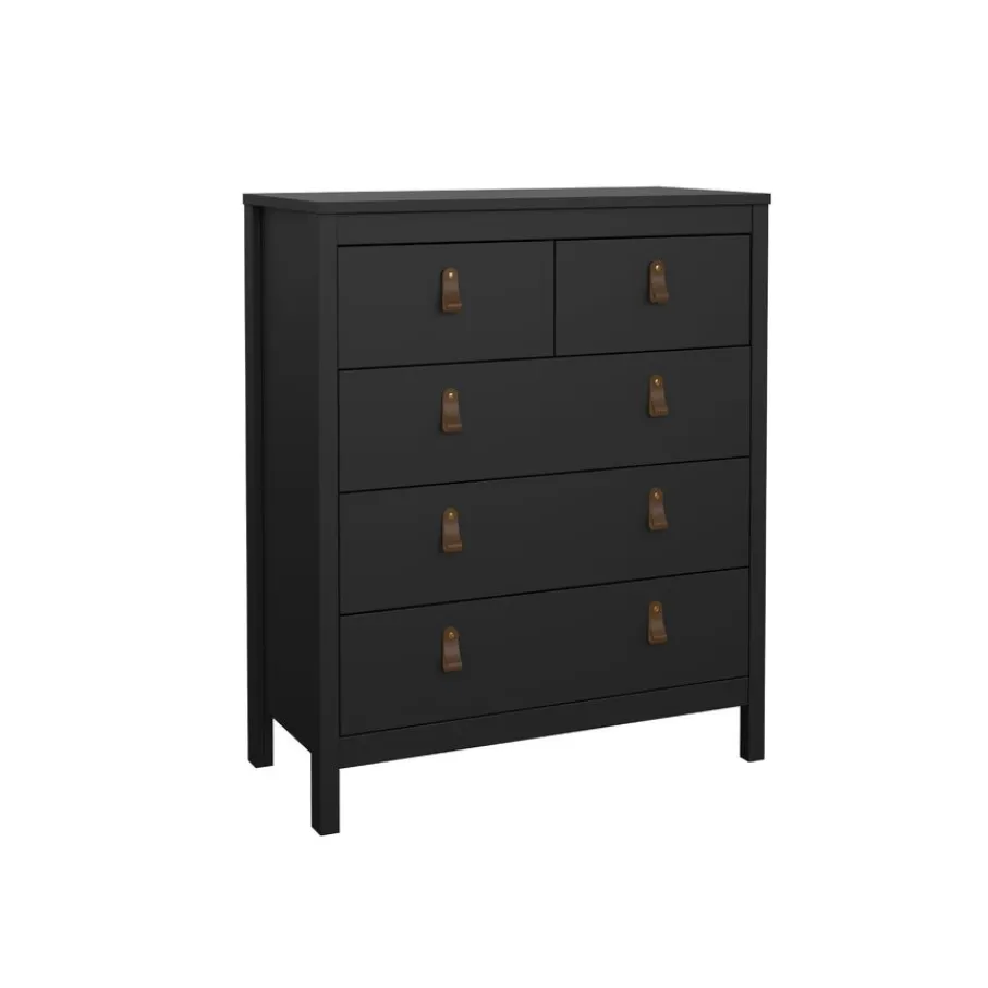 Ladekast Dallas beschikt over 5 lades en biedt daarmee lekker veel opbergruimte. Bovenin zitten 2 smalle lades en daaronder zijn 3 lades over de hele breedte van de kast.