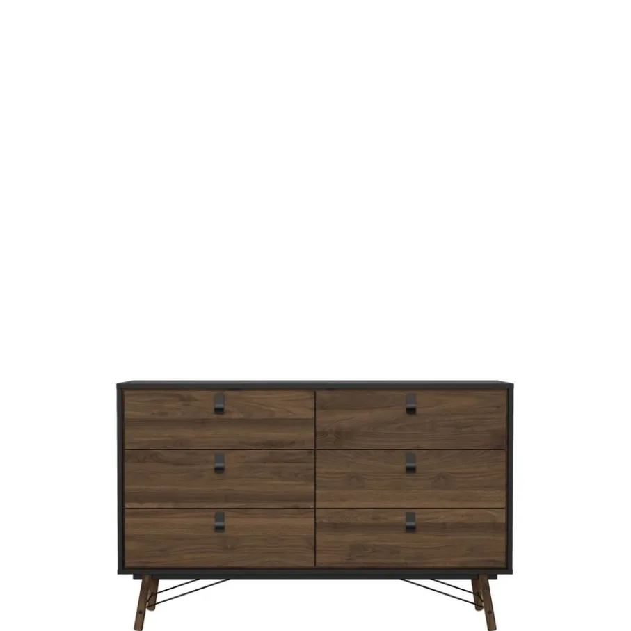 De Denver dubbele ladekast heeft zes brede lades met ruime opbergmogelijkheid. Met stalen kogellagers schuiven de lades moeiteloos open en dicht. De metalen handgrepen op de lades zorgen voor een speels accent.