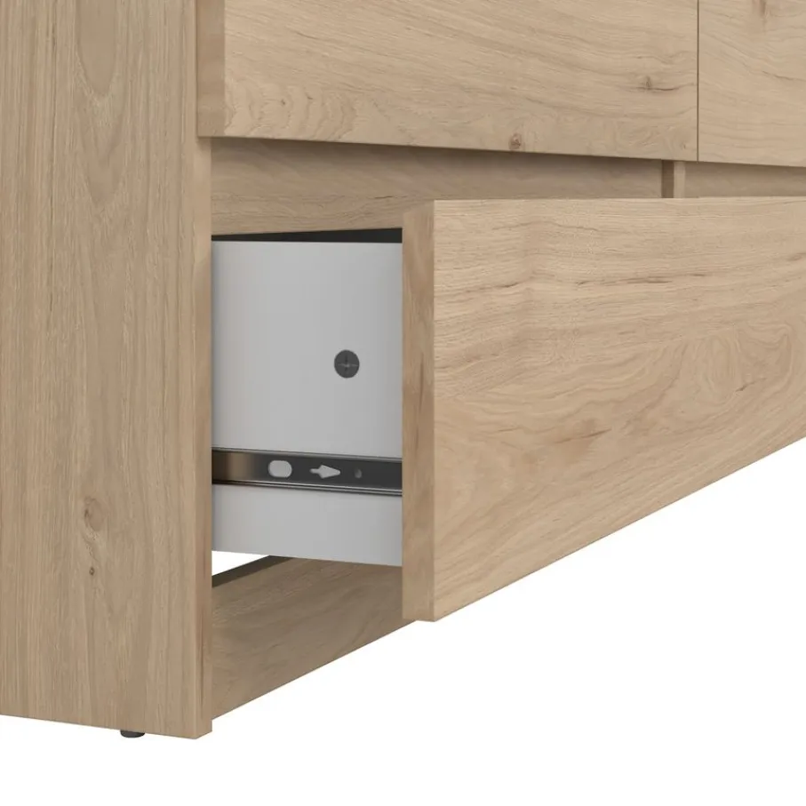 Deze ladekast heeft 6 ruime lades, perfect om van alles en nog wat netjes op te bergen. Ze hebben aan afmeting van 70×43 cm en zijn 12 cm diep. De greeploze lades lopen op metalen geleiders, zodat ze soepel openen en sluiten.