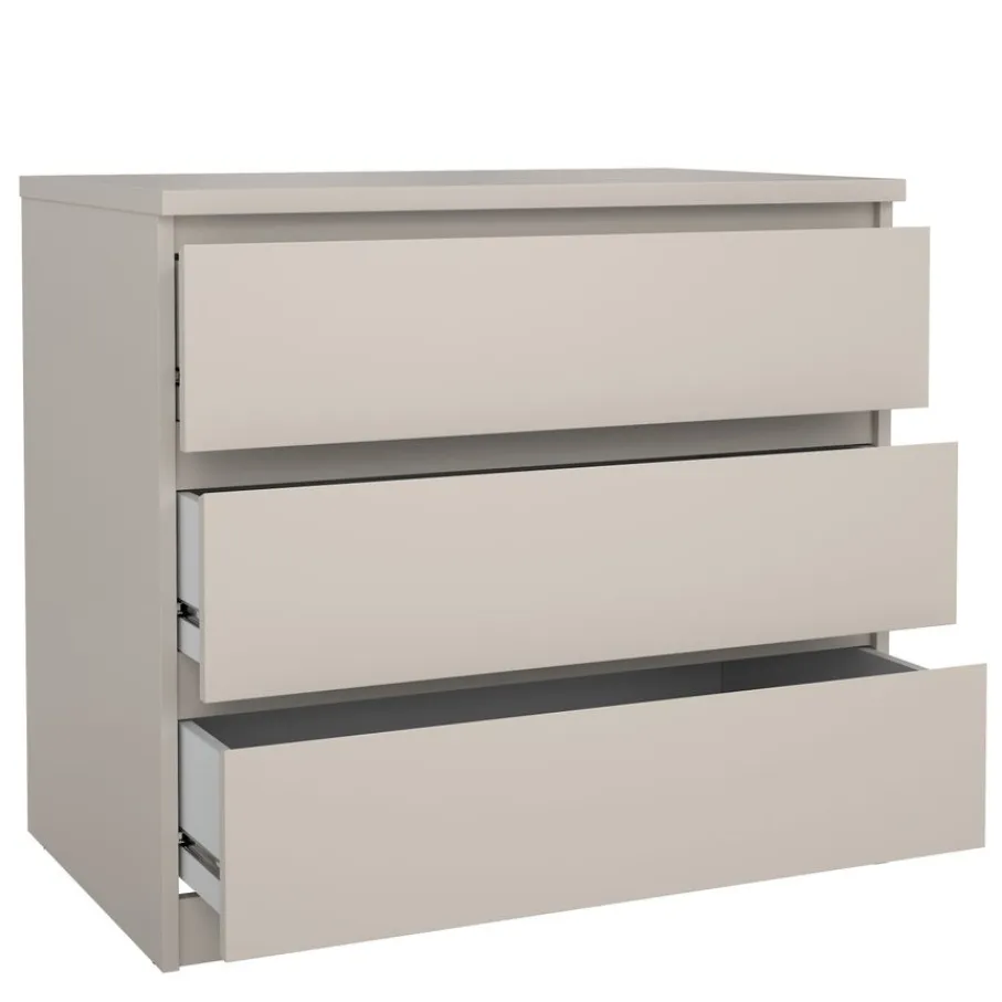 Deze ladekast heeft 3 ruime lades, perfect om van alles en nog wat netjes op te bergen. Ze hebben aan afmeting van 70×43 cm en zijn 12 cm diep. De greeploze lades lopen op metalen geleiders, zodat ze soepel openen en sluiten.