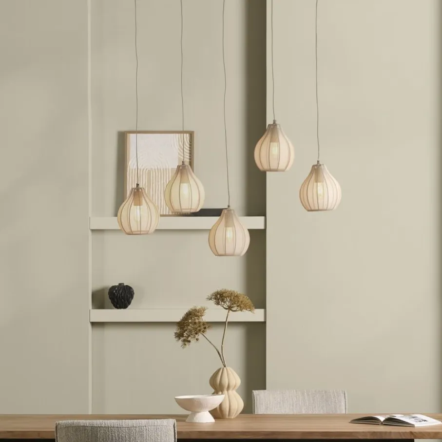 In de hanglamp gaan 5 gloeilampen met een grote fitting type E27. Deze worden niet meegeleverd. Om je lamp compleet te maken, vergeet dan niet om er de juiste lichtbronnen bij aan te schaffen.