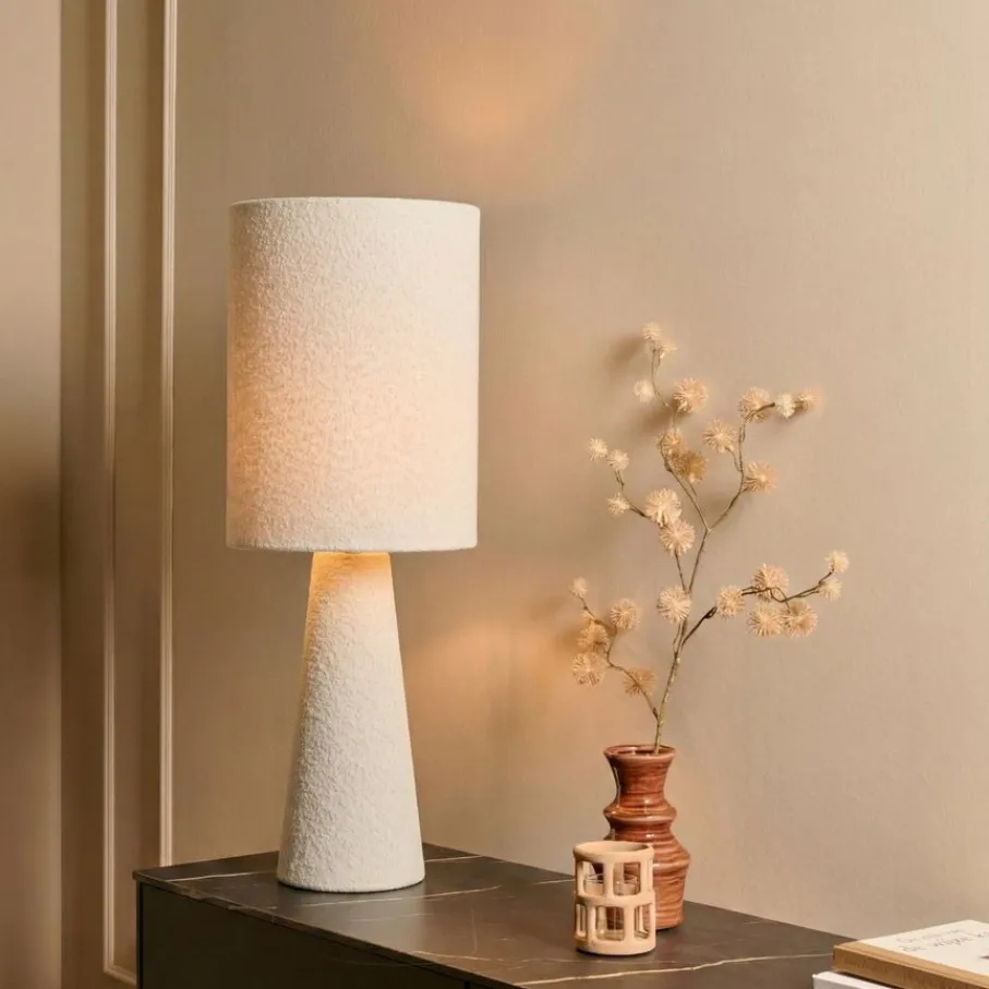 - Hoge tafellamp van trendy bouclé stof