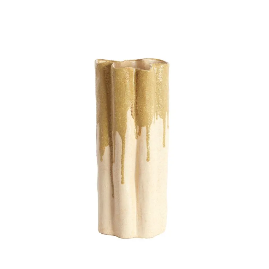 Geef je interieur een frisse update met vaas Flovilla van Light & Living, een echte blikvanger van prachtig keramiek. Het cilinder model heeft subtiele organische vormen. Om de look af te maken heeft de crème kleurige vaas een druip effect in olijfgroene kleur. Dit zorgt voor een fijne, natuurlijke sfeer in je interieur. Perfect voor een enkele tak of een mooie droogbloemen om jouw plekje nog gezelliger te maken. Zet ‘m op je dressoir, bijzettafel of vensterbank en geniet van de subtiele elegantie die vaas Flovilla toevoegt aan jouw woonstijl.