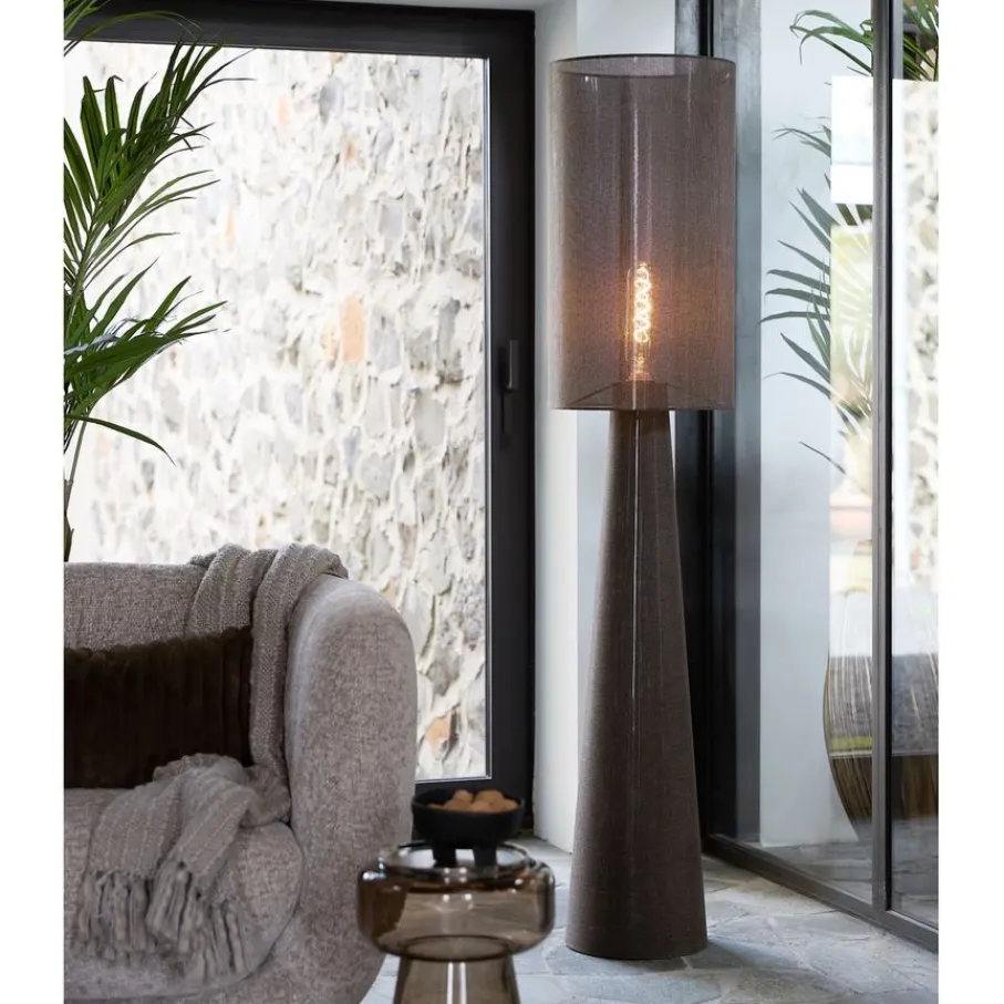 - Hoge vloerlamp van bruine stof