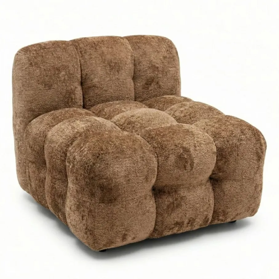 Geef je interieur een heerlijke upgrade met loveseat Gogoo, dé plek waar jij na een lange dag helemaal tot rust komt. De doorgestikte afwerking geeft een moderne design look aan de 1,5-Zitsbank. De stiksels zorgen voor een volumineus bubbel effect, dat perfect past in zowel een modern als retro getint interieur. De zachte chenille bekleding in rijke cognac kleur, maakt van Gogoo niet alleen een plek om te ontspannen, maar ook een absolute blikvanger in jouw interieur! TIP: Combineer deze loveseat bij 3-zitsbank Gogoo en maak er zo een hoekbank van. Je kunt het zitelement zowel aan de linker- als aan de rechterkant plaatsen. De verbinding om de loveseat aan de bank te koppelen is al aan de onderzijde bevestigd.