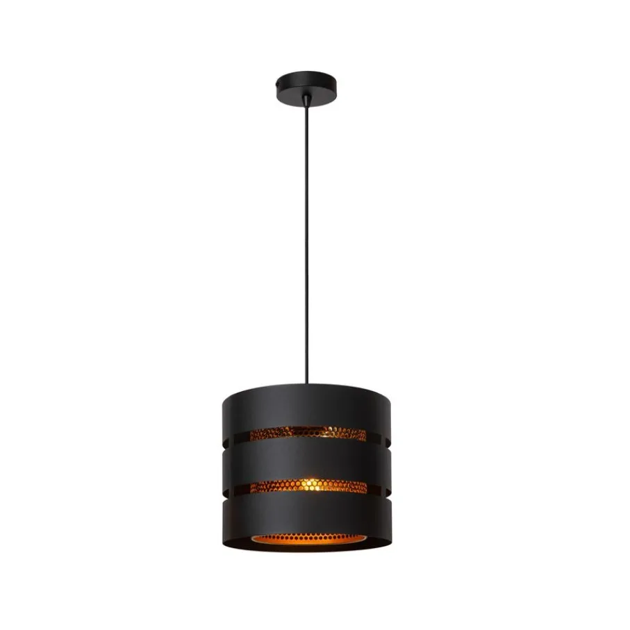 - Dompel je huis onder in een warme, sfeervolle gloed dankzij de unieke dubbellaagse kap met geperforeerd goudkleurig metaal.