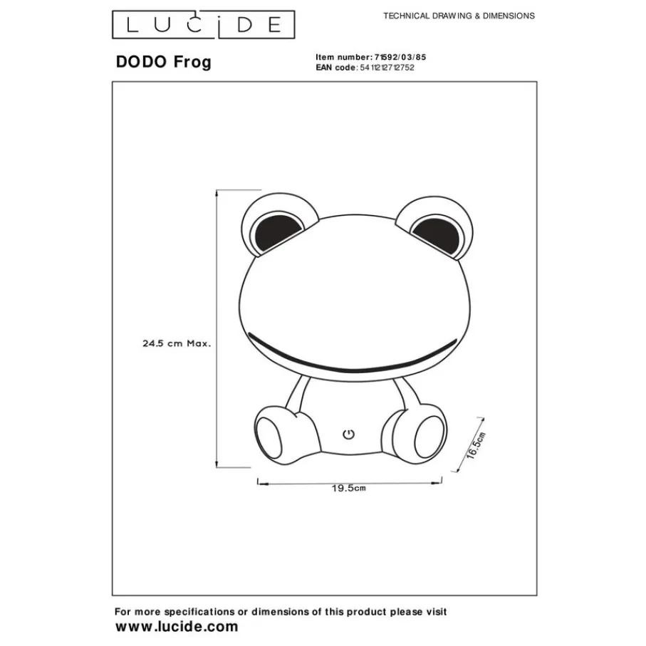 - Plaats de Dodo Frog waar je wilt, want dankzij de oplaadbare batterij geniet je van draadloos licht en optimale flexibiliteit.