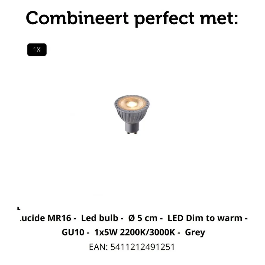 - Vergeet de lichtbron niet! De benodigde GU10-lamp wordt niet meegeleverd, maar zo kies je wel zelf de perfecte lichtkleur voor jouw sfeer.