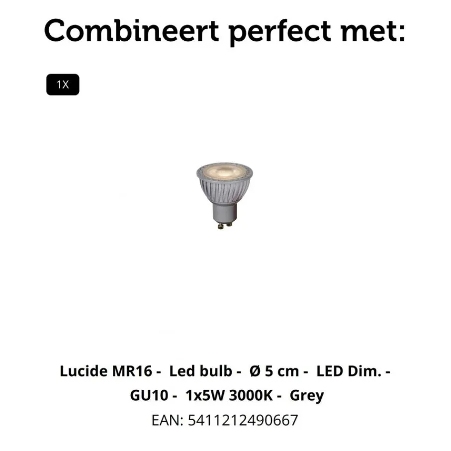- Vergeet de GU10 lichtbron niet! Deze wordt niet meegeleverd, maar zo kies je wel zelf de perfecte lichtintensiteit en kleur die bij jouw sfeer past.