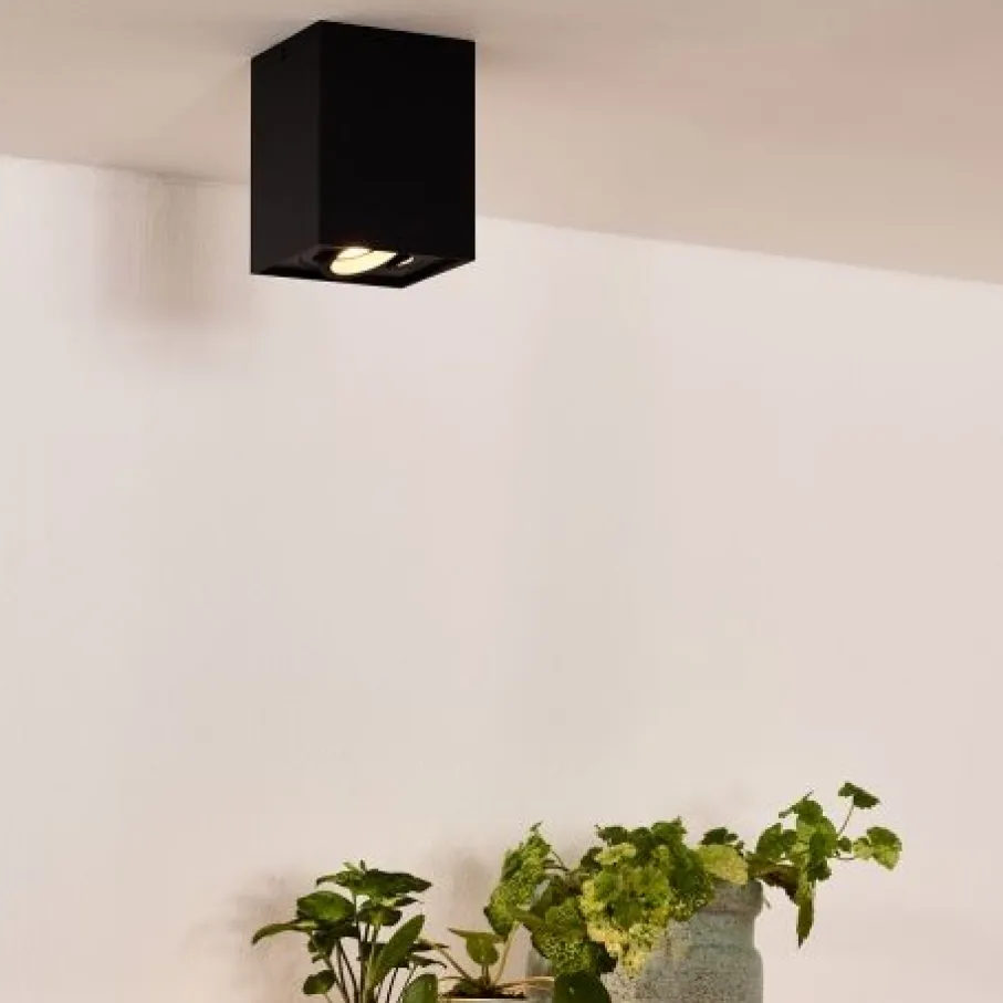 - Geef je interieur een elegante touch met deze strakke plafondspot die door zijn matzwarte afwerking in elke woonstijl past.