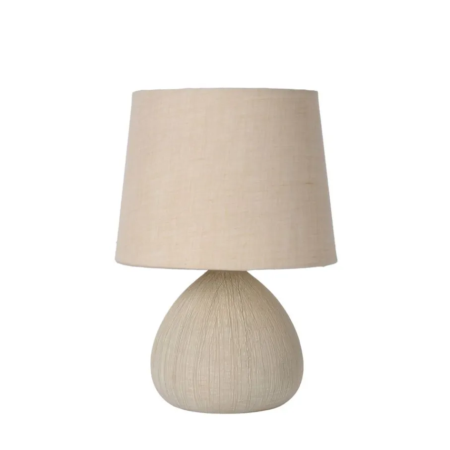 In de tafellamp gaat een gloeilamp met een kleine fitting type E14. Deze wordt niet meegeleverd. Om je lamp compleet te maken, vergeet dan niet om er de juiste lichtbron uit onze collectie lichtbronnen bij aan te schaffen.