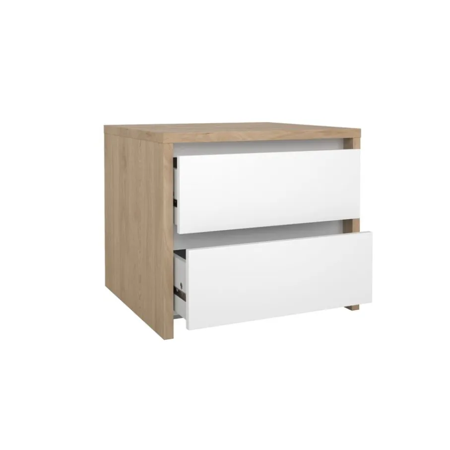 - Houd al je avondessentials netjes uit het zicht in de twee ruime lades, zodat je slaapkamer altijd opgeruimd en kalm oogt.