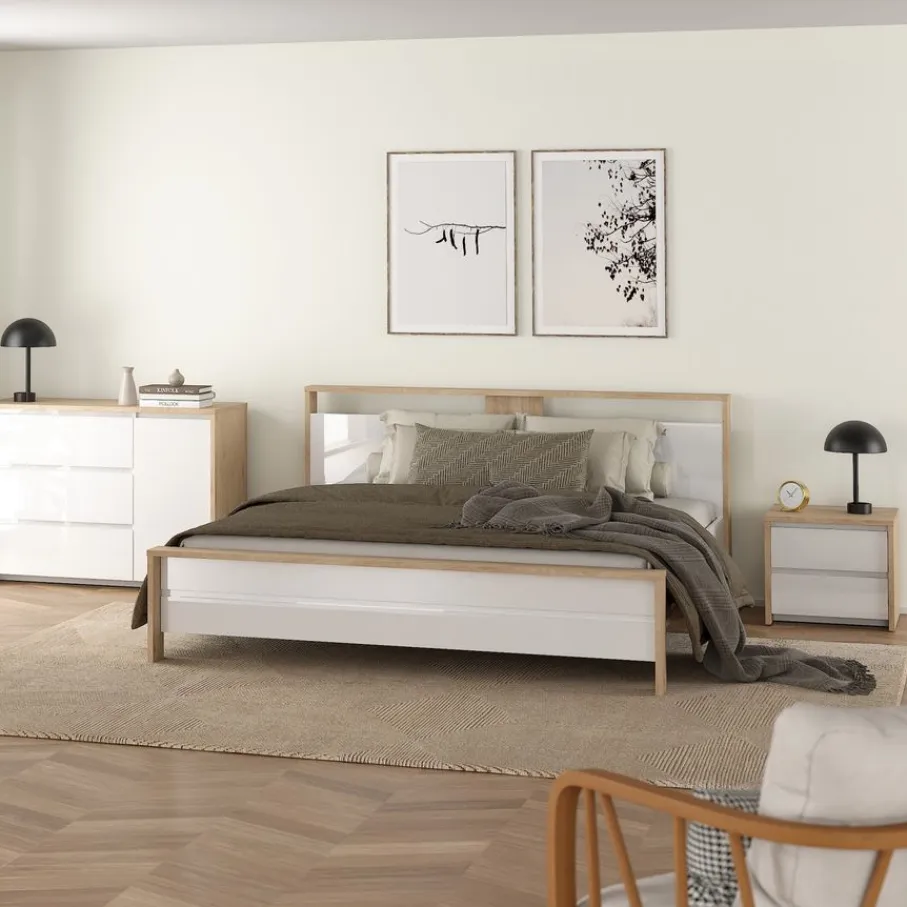 - Creëer direct een rustige en moderne sfeer in je slaapkamer dankzij het strakke Scandinavische design en de elegante greeploze lades.