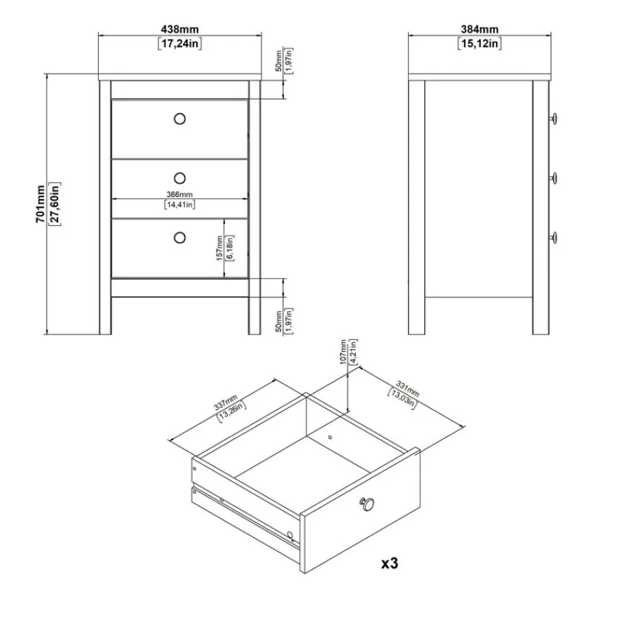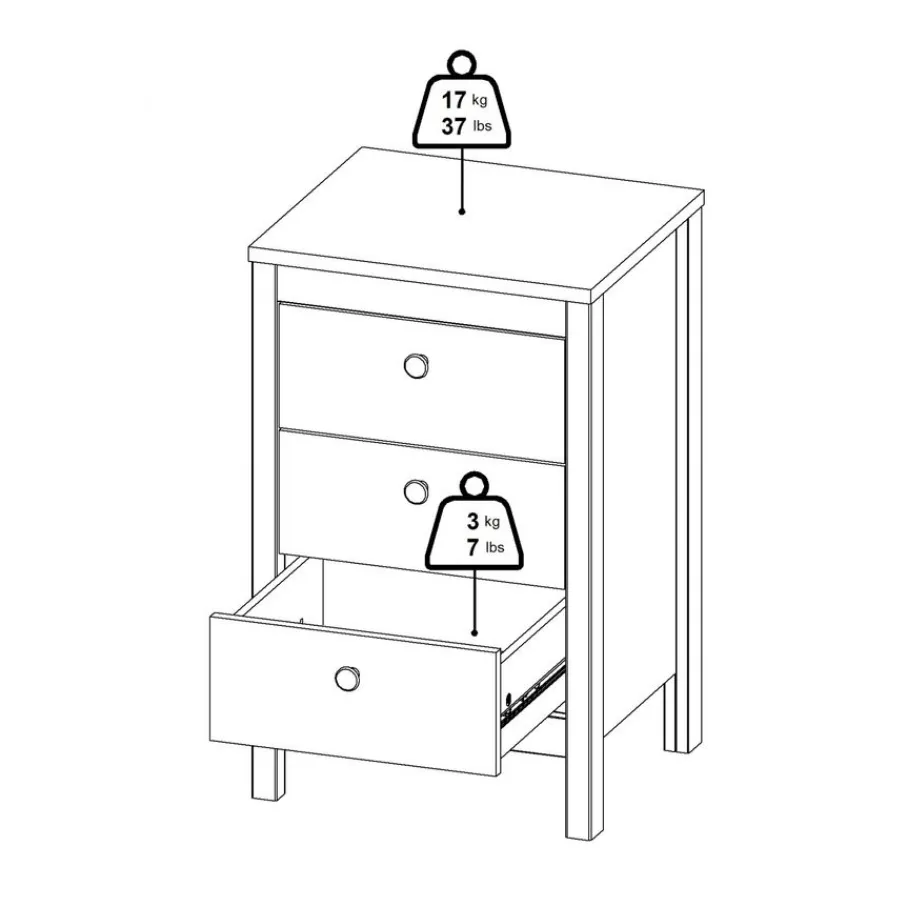 - Al je essentials netjes opgeborgen: De drie handige lades bieden fijne extra opbergruimte, ideaal voor een rustige en opgeruimde slaapkamer.