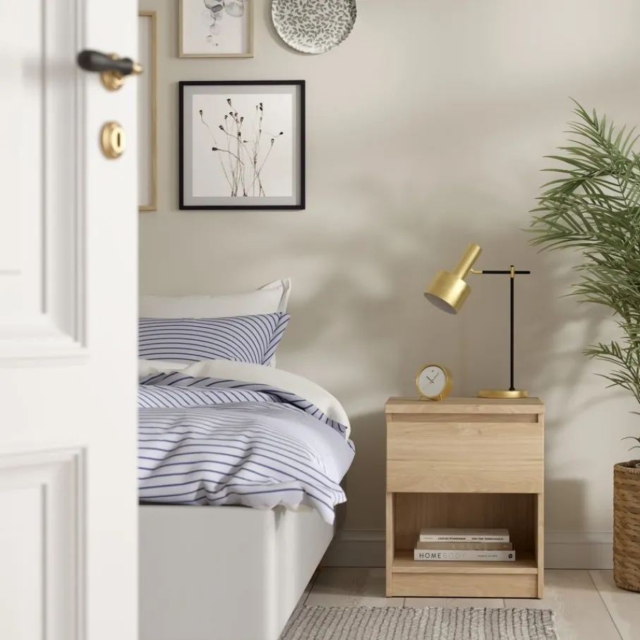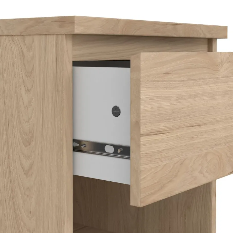 Met een compact formaat en praktische opbergmogelijkheden past nachtkastje Luna moeiteloos naast elk bed. Dit kastje combineert een handige lade met een open vak. De lade opent soepel door de kogel gelagerde geleiders en het open gedeelte is perfect voor je favoriete boeken of accessoires.