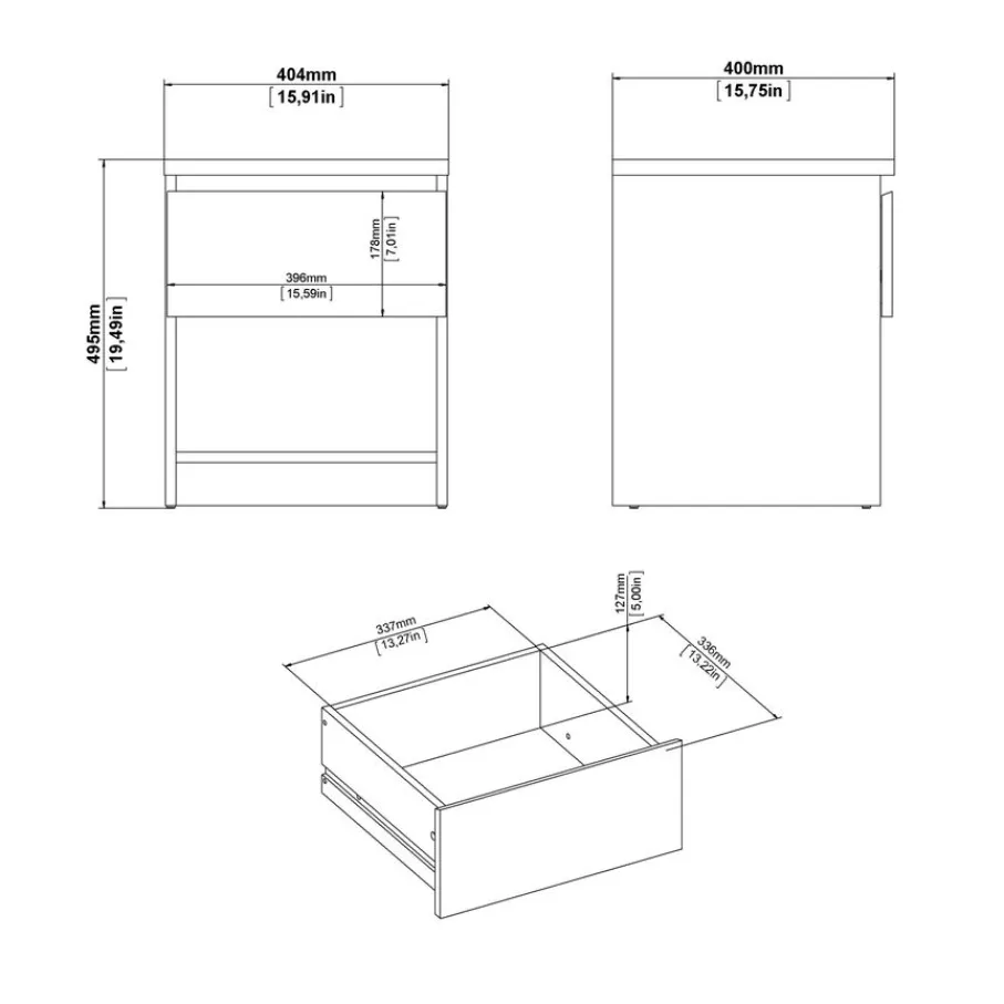 - Houd al je avondessentials netjes binnen handbereik met de praktische lade en het open vak.