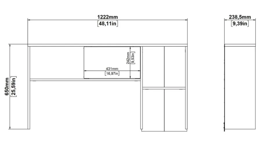 - Afmeting 122,2×23,9 cm en 65 cm hoog