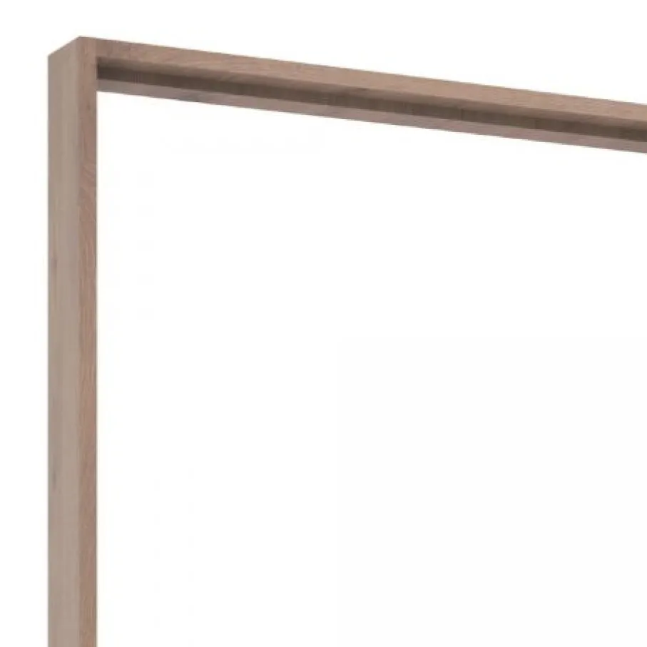 Let op: het gaat hier alleen om de omlijsting die past op kledingkast Almera. Deze passepartout heeft dezelfde robuuste houtlook en geeft een complete en luxe look aan de draaideurkast. De omlijsting maakt de kast in totaal 204 cm breed en 220 cm hoog. De passepartout moet nog gemonteerd worden.