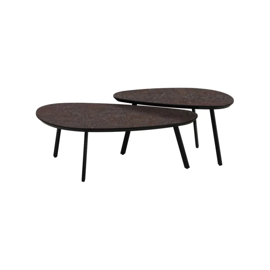 - Extra flexibiliteit en sfeer in je interieur: Deze set van twee salontafels met verschillende hoogtes en organische vormen biedt je diverse opstellingen en voldoende plek voor al je spulletjes.