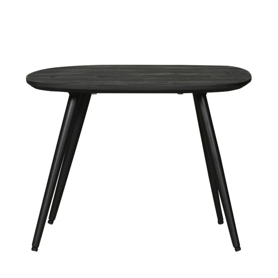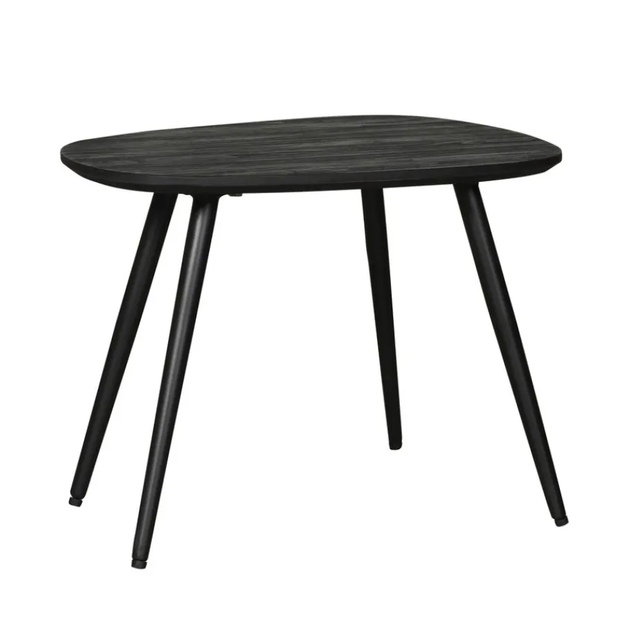- Chique blikvanger: Het diepzwarte, gelakte blad van gerecycled teakhout, gecombineerd met strakke metalen poten, zorgt voor een moderne en luxe uitstraling.