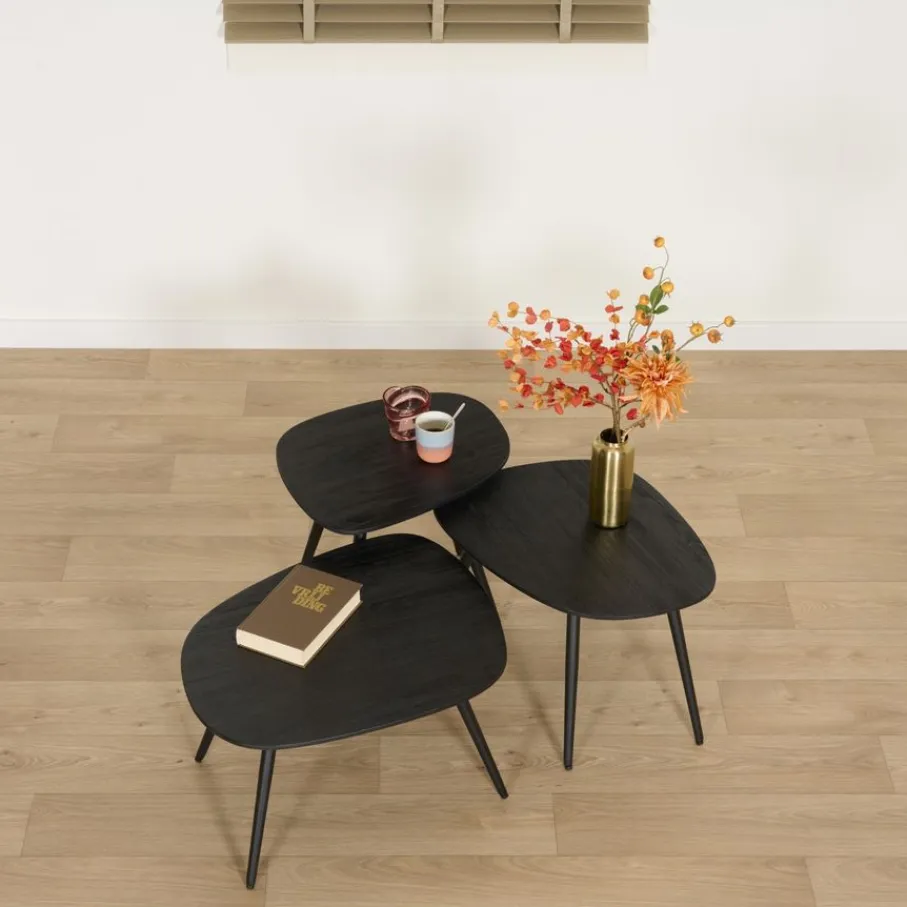 - Extra flexibiliteit in je interieur: Deze set van salontafels biedt je diverse opstellingen en voldoende plek voor al je spulletjes, precies zoals jij het wilt.