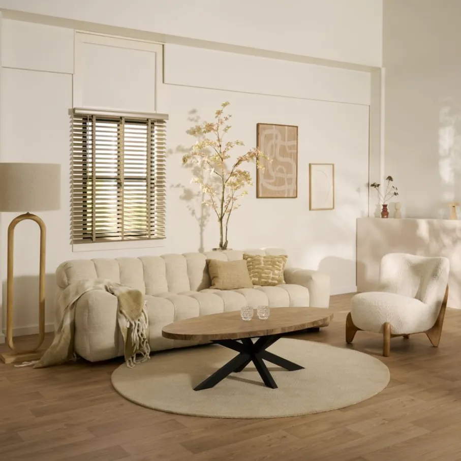 - De ideale match voor jouw bank: Dankzij de sierlijke ovale vorm past salontafel Culemborg perfect bij zowel je hoekbank als je rechte bank, zo creëer je een harmonieus geheel.