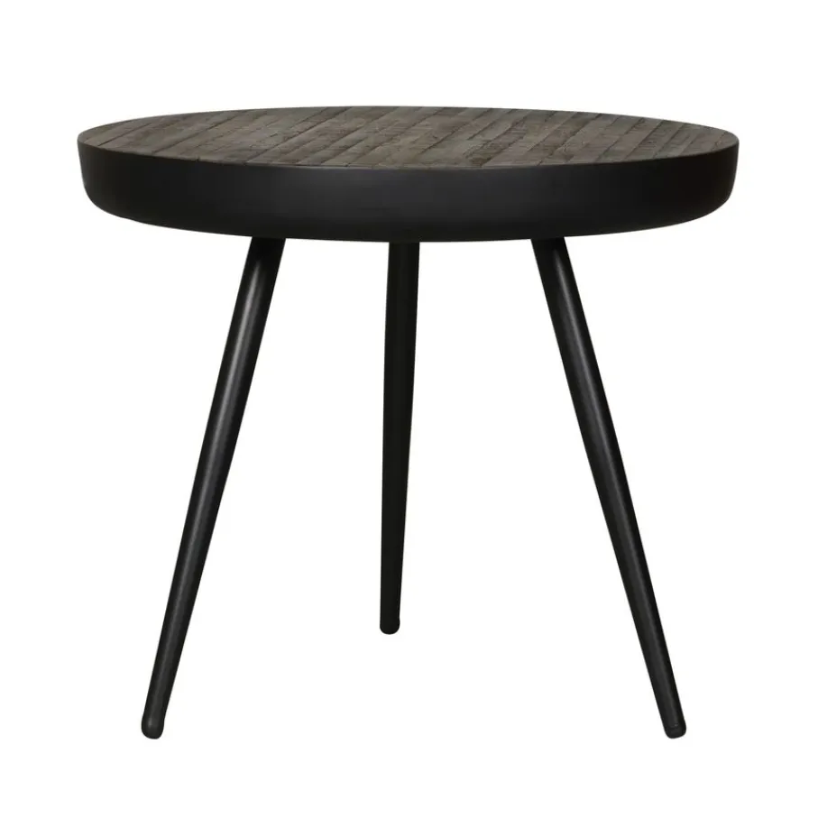 - Modern design met een robuuste touch: De ronde vorm en de robuuste look van het teakhout combineren perfect met de slanke, schuine zwarte metalen poten voor een eigentijdse en toch gezellige look.