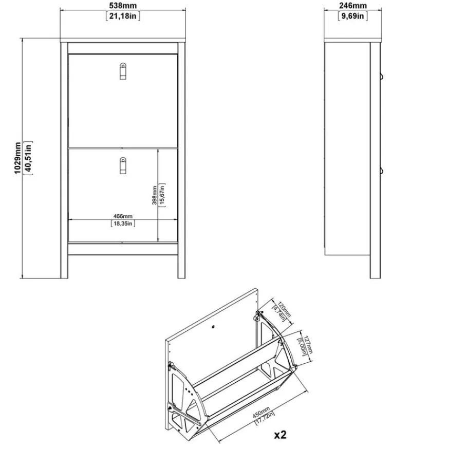 - Super slimme opberger! Dankzij de geringe diepte (slechts 24,6 cm!) is deze schoenenkast ideaal voor smalle gangen of die plekken waar je nét wat extra opbergruimte nodig hebt, zonder dat het in de weg staat.