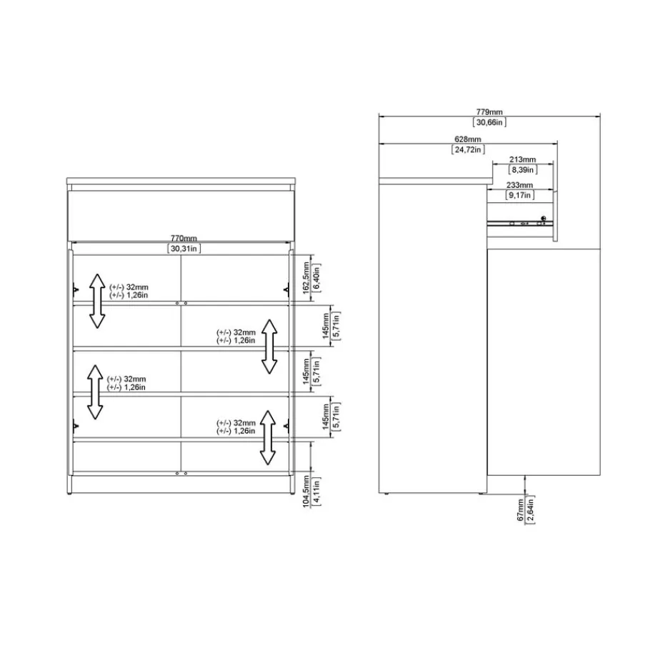 - Creëer direct rust in huis! Met z’n strakke design en handige afgeschuinde handgrepen geeft deze schoenenkast jouw entree een moderne, minimalistische look.
