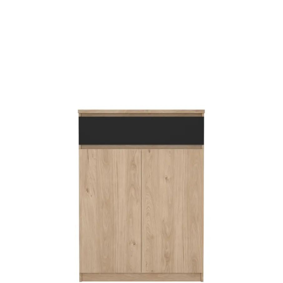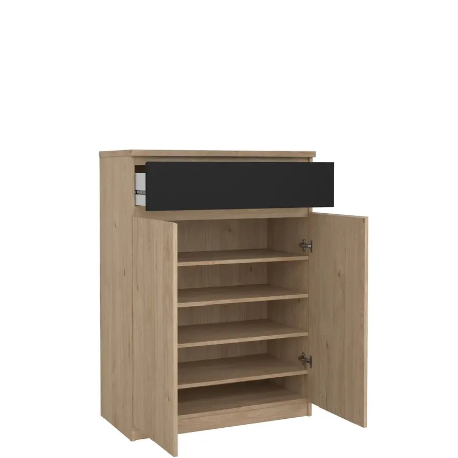 De Luna schoenenkast heeft een ruim vak met vier planken. Daarboven zit, over de hele breedte, een lade op soepele geleiders.