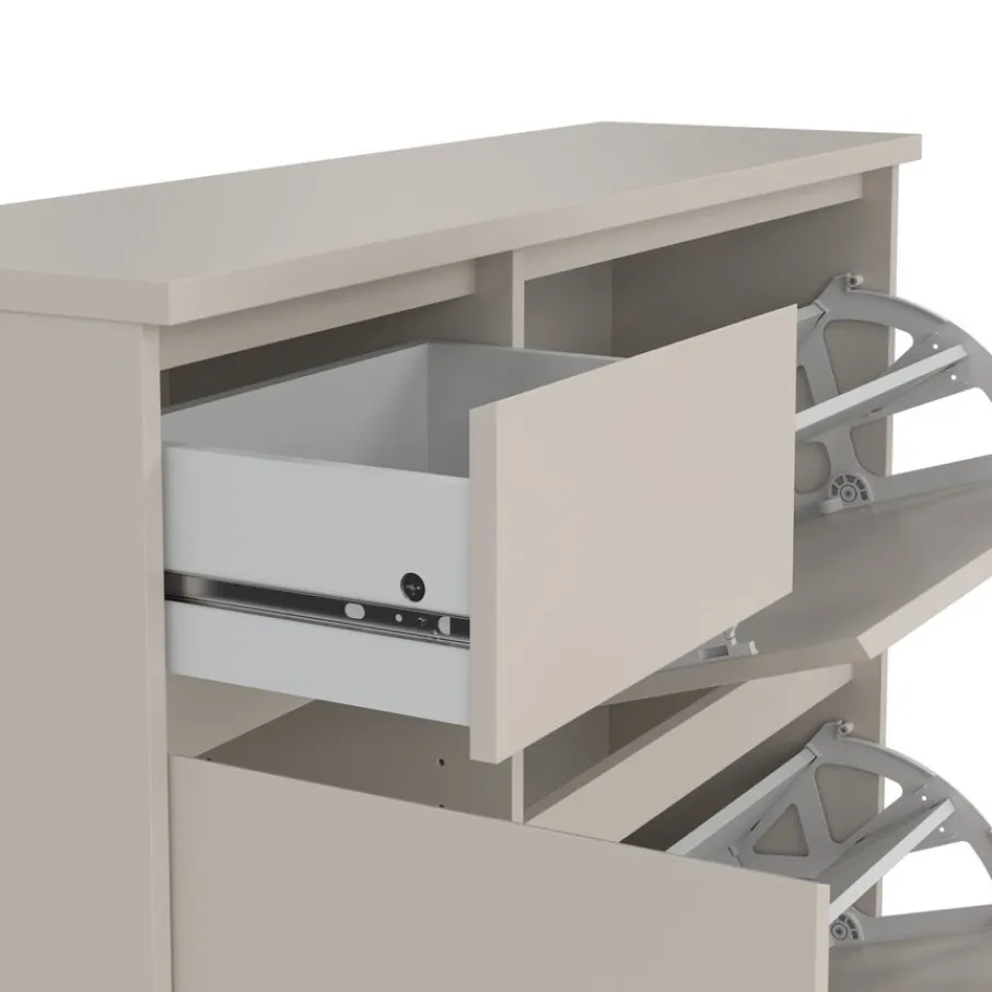 - Alles super netjes! Met een handige lade voor je sleutels, een extra vak met plank én speciale klepvakken voor wel 12 paar schoenen, houd je je entree perfect georganiseerd.