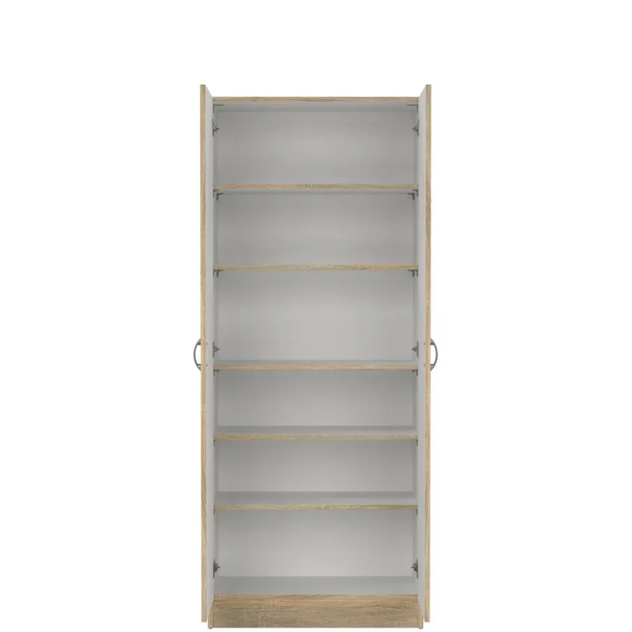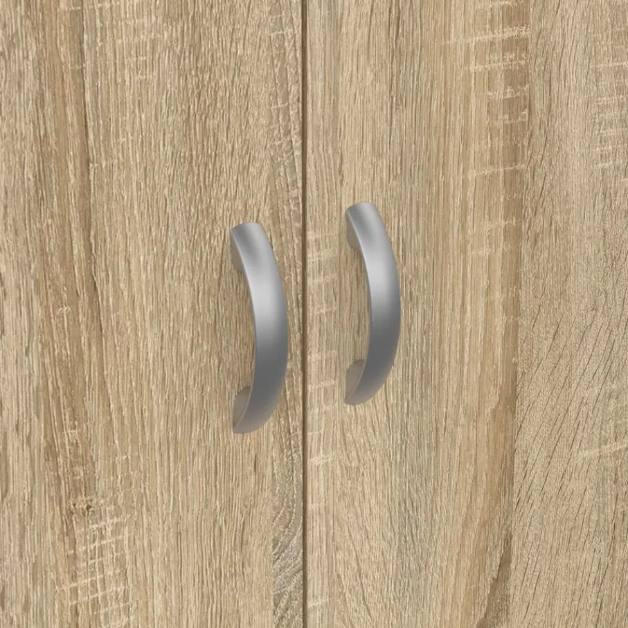 Deze variant van de Miami opbergkasten wordt geleverd inclusief vijf verstelbare planken voor opbergoplossingen op maat. Jij bepaalt zelf hoe je de kast indeelt. De deuren hebben een half ovale handgreep met een zilvergrijze metallook.