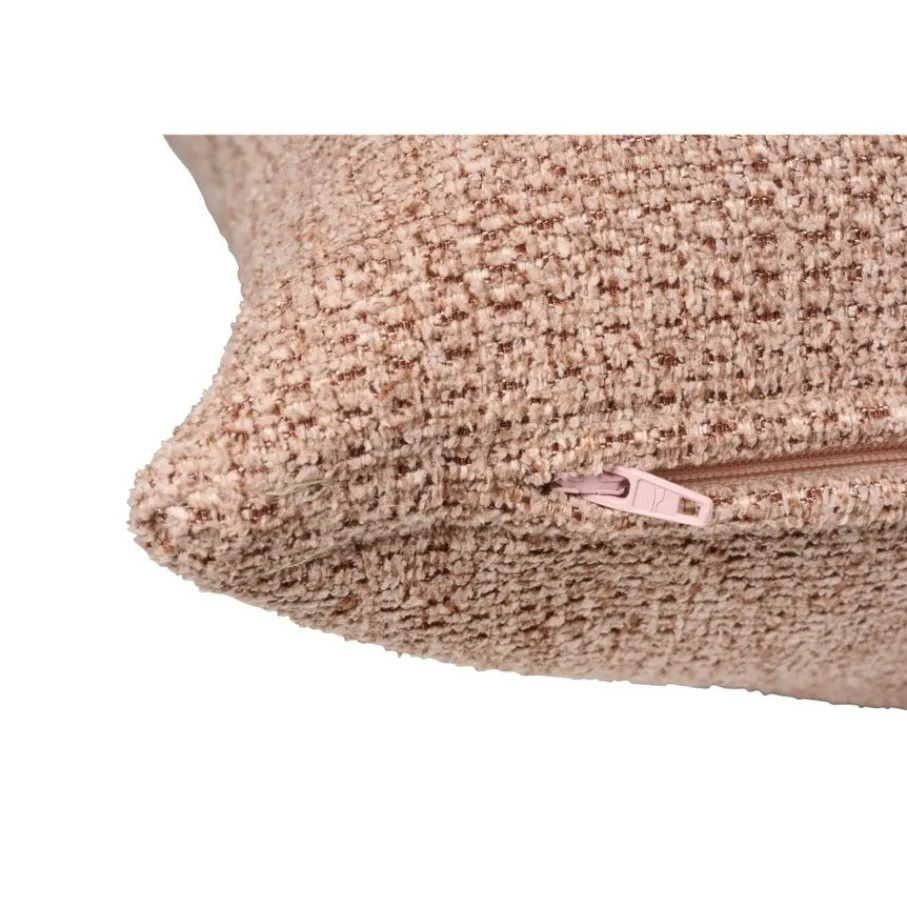 Sierkussen Miton is 45x 45 cm. Het is gemaakt van 90% polyester en 10% nylon in een oud roze kleur. De hoes heeft een ritssluiting en kan je wassen op een temperatuur van 30 graden.