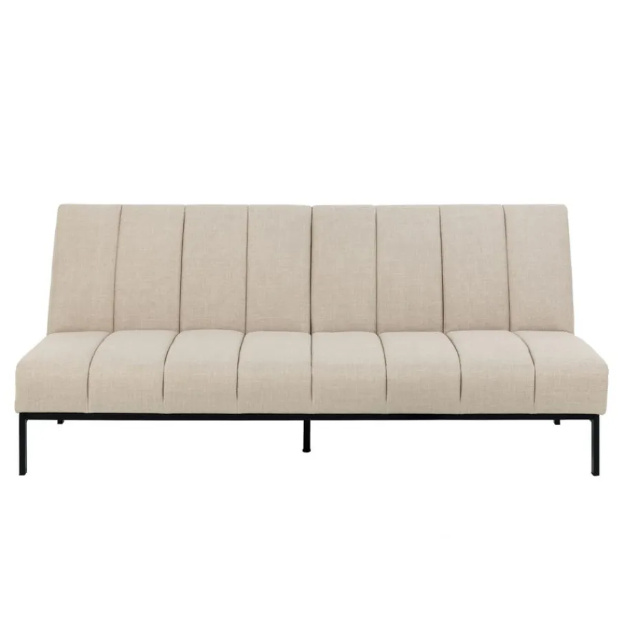 De Inez slaapbank is bekleed met stof Basel, een materiaal met een mooie geweven structuur. Een slijtvaste en sterke stof van 100% polyester. De beige kleur is elegant en stijlvol en combineert makkelijk.