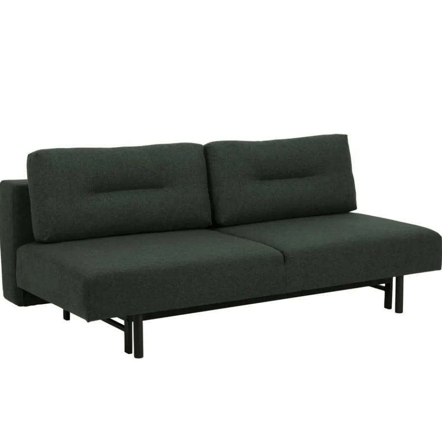 Slaapbank Luz heeft een vast zitkussen en losse rugkussens. De zithoogte 42 is cm en de zitdiepte is 58 cm. Door het metalen onderstel uit te trekken en de rugleuning naar beneden te klappen, transformeer je de slaapbank eenvoudig tot een comfortabel tweepersoonsbed van 200×139 cm.