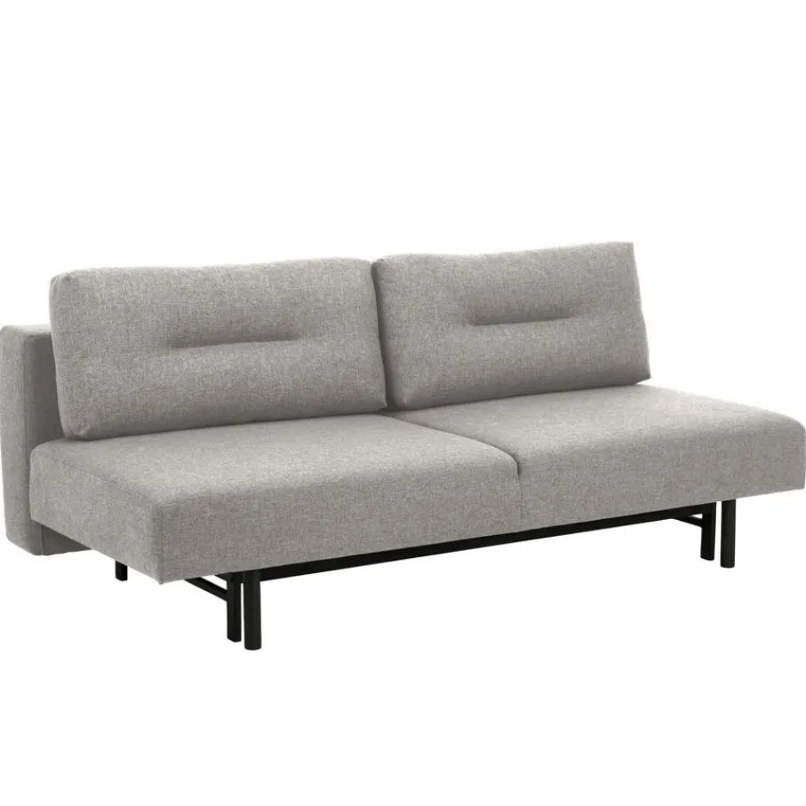Slaapbank Luz heeft een vast zitkussen en losse rugkussens. De zithoogte 42 is cm en de zitdiepte is 58 cm. Door het metalen onderstel uit te trekken en de rugleuning naar beneden te klappen, transformeer je de slaapbank eenvoudig tot een comfortabel tweepersoonsbed van 200×139 cm.