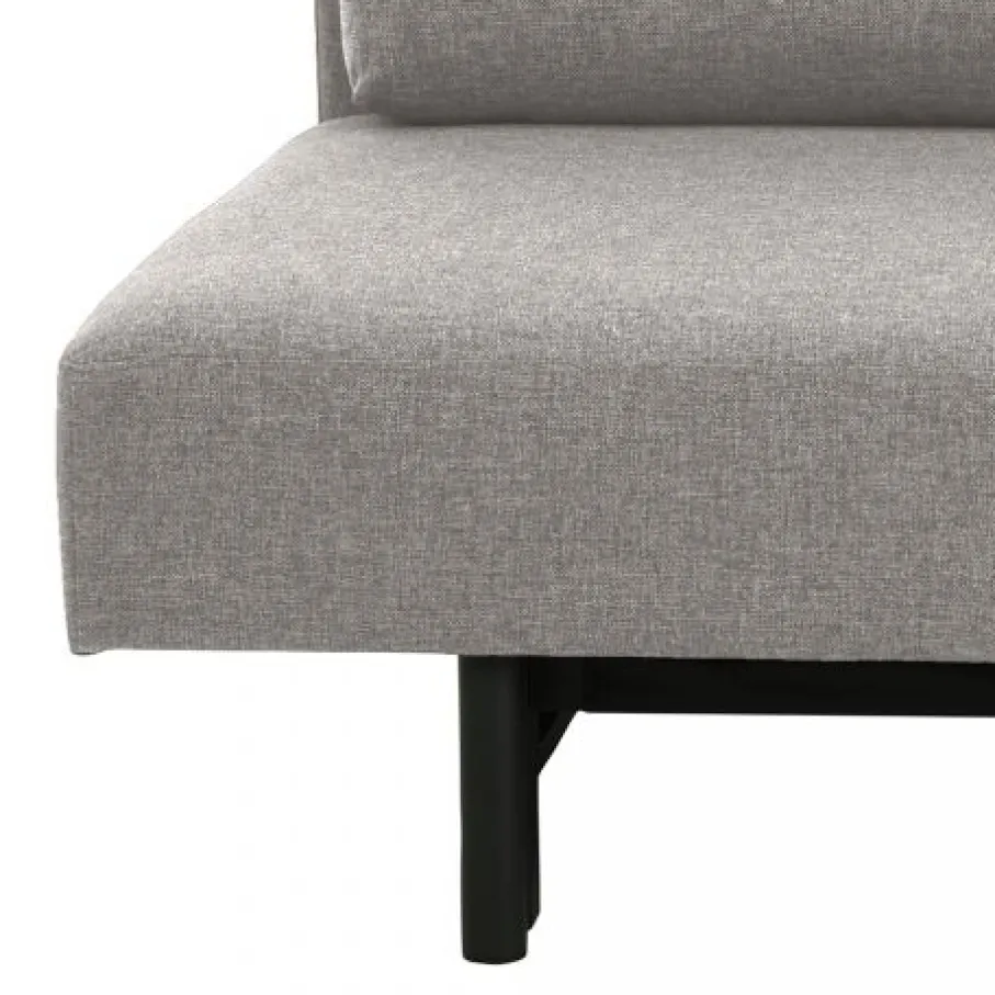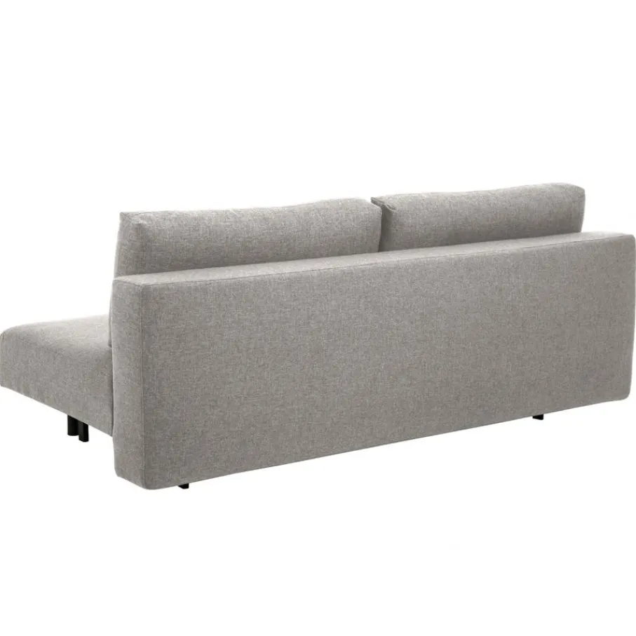 De slaapbank is bekleed met stof Spirit, een aangename stof met een fijn geweven structuur. De lichtgrijze kleur is makkelijk te combineren met diverse kleuren en stijlen.