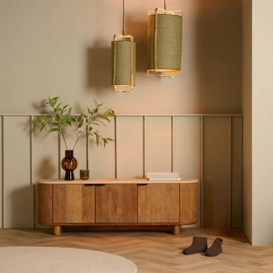 - Geef je woonkamer een instant boost met de opvallende, organische vormen en ronde poten van dit unieke tv-meubel.