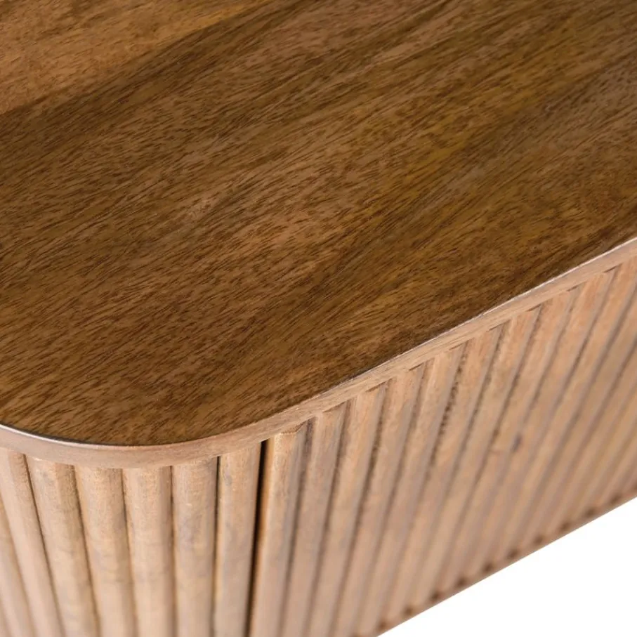 - Geef je interieur direct een stijlvolle upgrade met dit unieke tv-meubel, dankzij de ronde lijnen en elegante lamellen die overal passen.