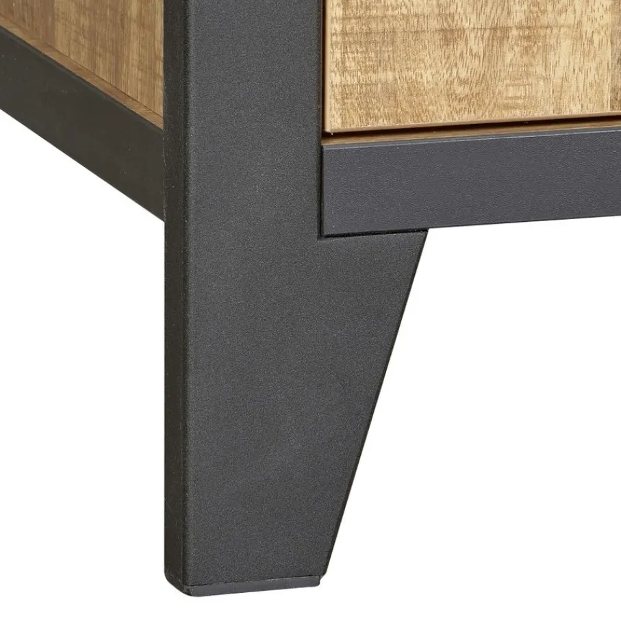 - Geef je interieur een stoere én warme boost met dit trendy tv-meubel, dat door de robuuste houtlook en het zwarte metaal moeiteloos in diverse woonstijlen past.