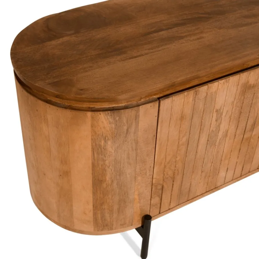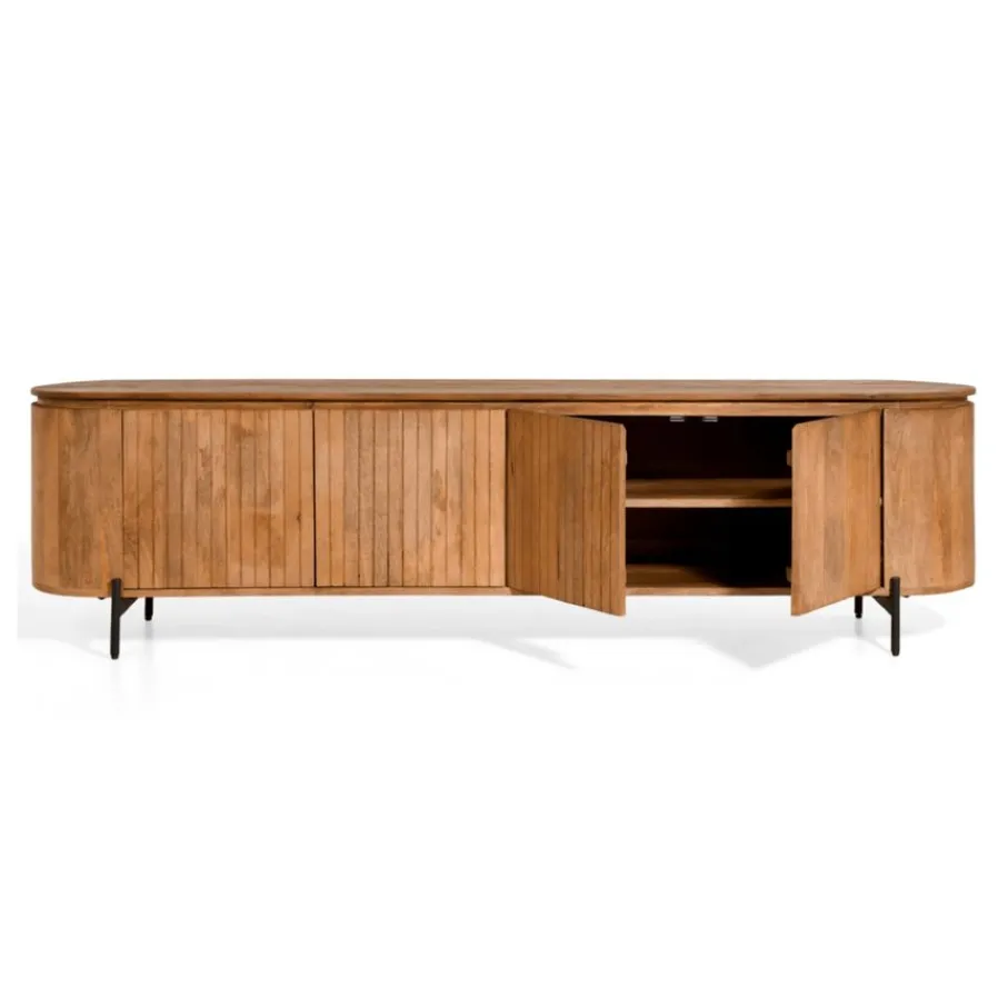 - Geef je interieur een luxe upgrade met tv-meubel Viktor, door het gelakte mangohout en de stijlvolle ribbeldeuren.